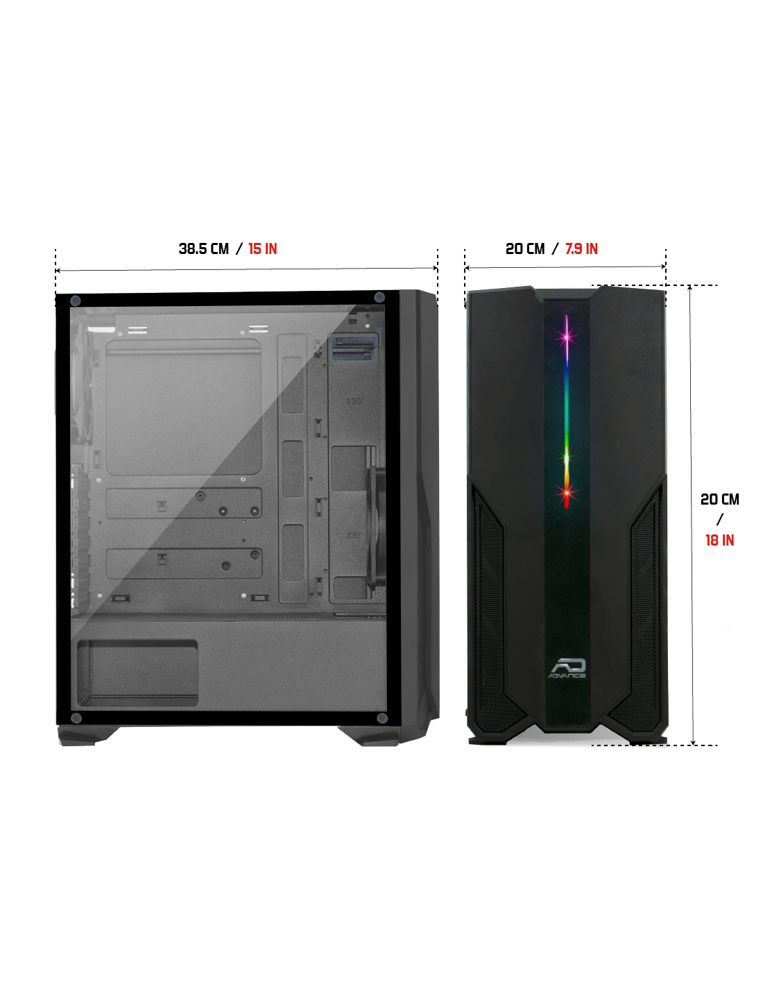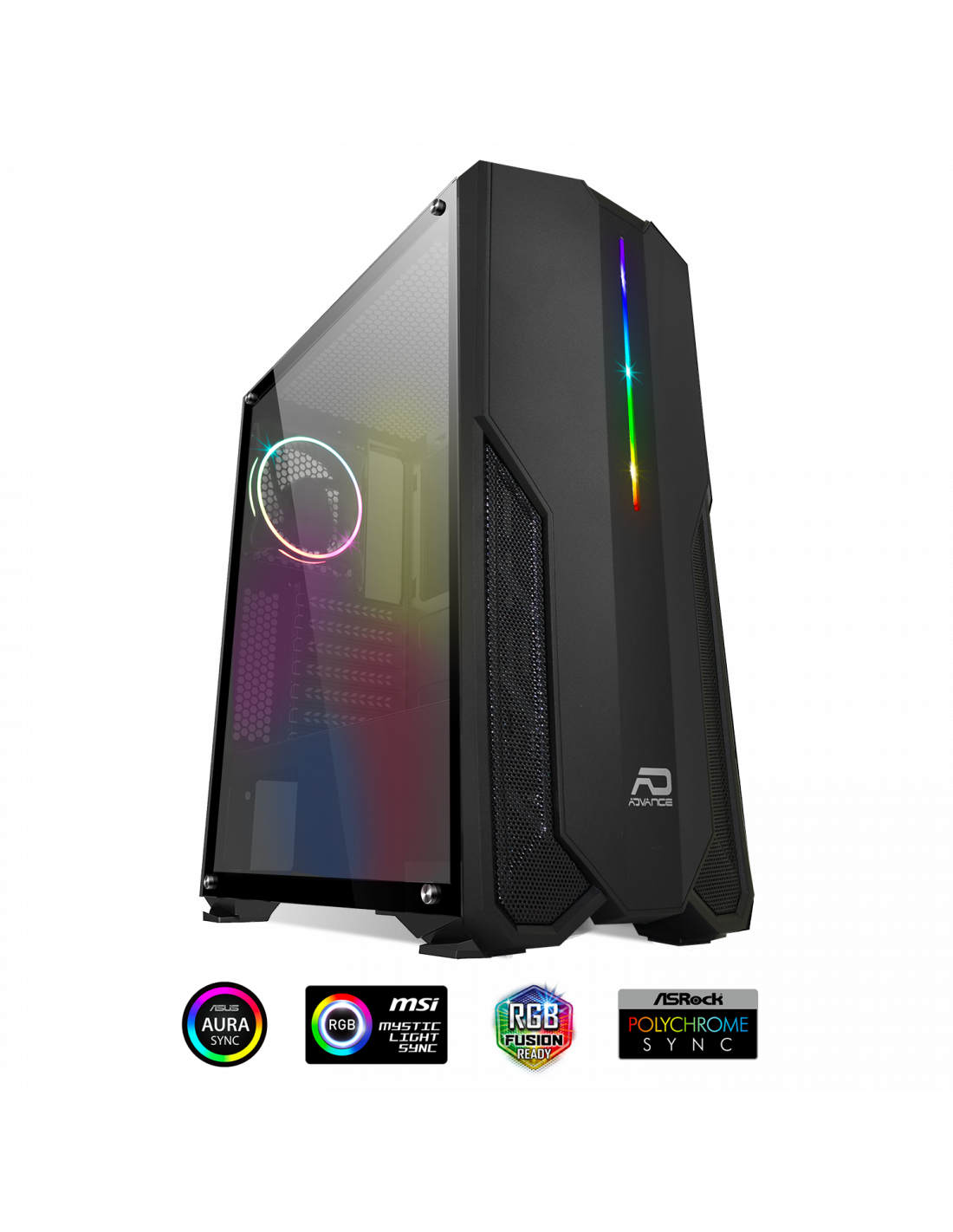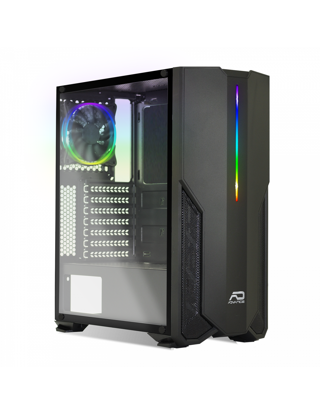 Die Marke ADVANCE ist stolz darauf, Ihnen das Gehäuse PHOENIX vorzustellen, das speziell für Gamer entwickelt wurde, die ein kühnes Design mit RGB-LEDs und einer Seitenwand aus gehärtetem Glas suchen, um stets den besten Blick auf Ihr Setup zu haben. Sein Gaming-Format, elegant und futuristisch, ermöglicht es ihm, eine Konfiguration auf Basis eines ATX- oder Micro-ATX-Motherboards aufzunehmen.