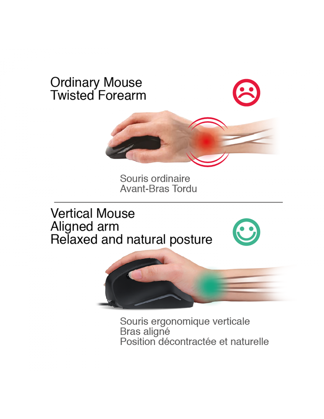 Ergonomische Maus, die Muskel-Skelett-Beschwerden (MSB) der Hand, des Handgelenks oder der Schultern vorbeugt.
