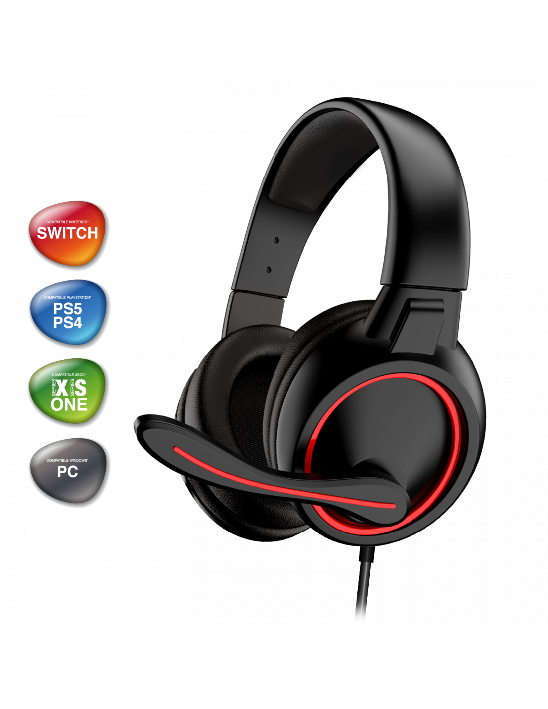 The GTA 210 Gamer Headset is compatible with multiple platforms: Nintendo Switch, PS5, PS4, Xbox Series X, Xbox Series S, Xbox One, and PC.