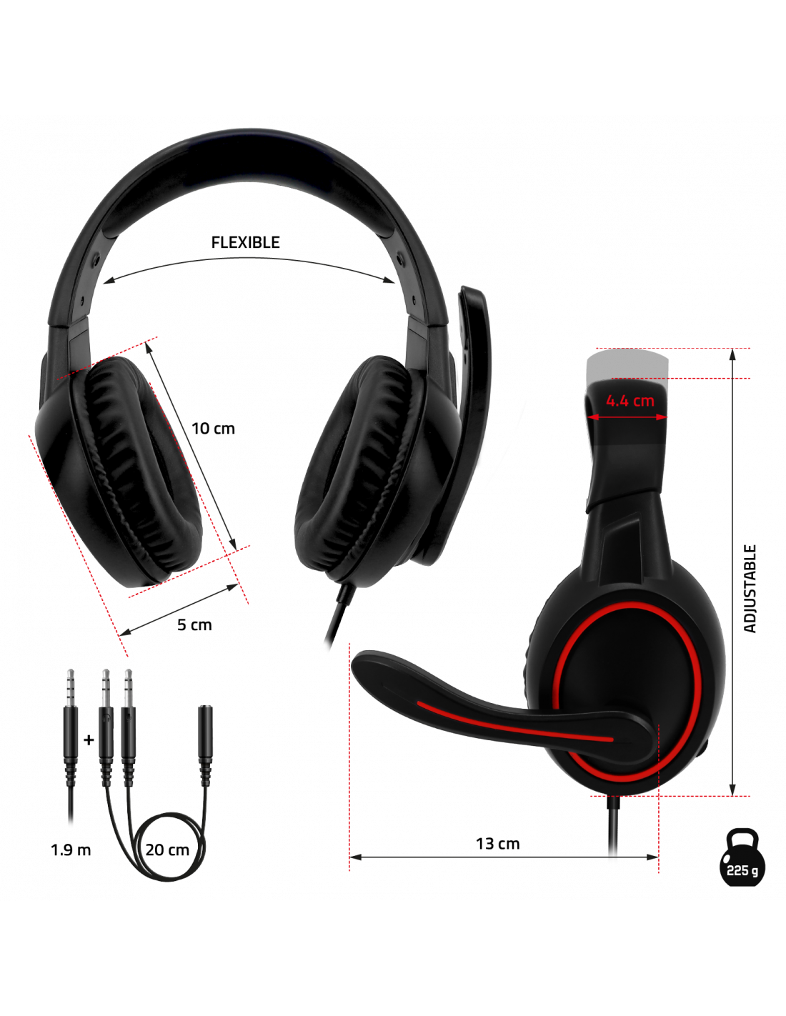 Multi-platform: Main cable 1.90 meters simple Jack 3.5mm (4 Pins), compatible: Nintendo Switch, PS5, PS4, Xbox Series X, Xbox Series S, Xbox One, and 20 cm extension Double Jack 3.5mm (3 Pins), compatible: PC
