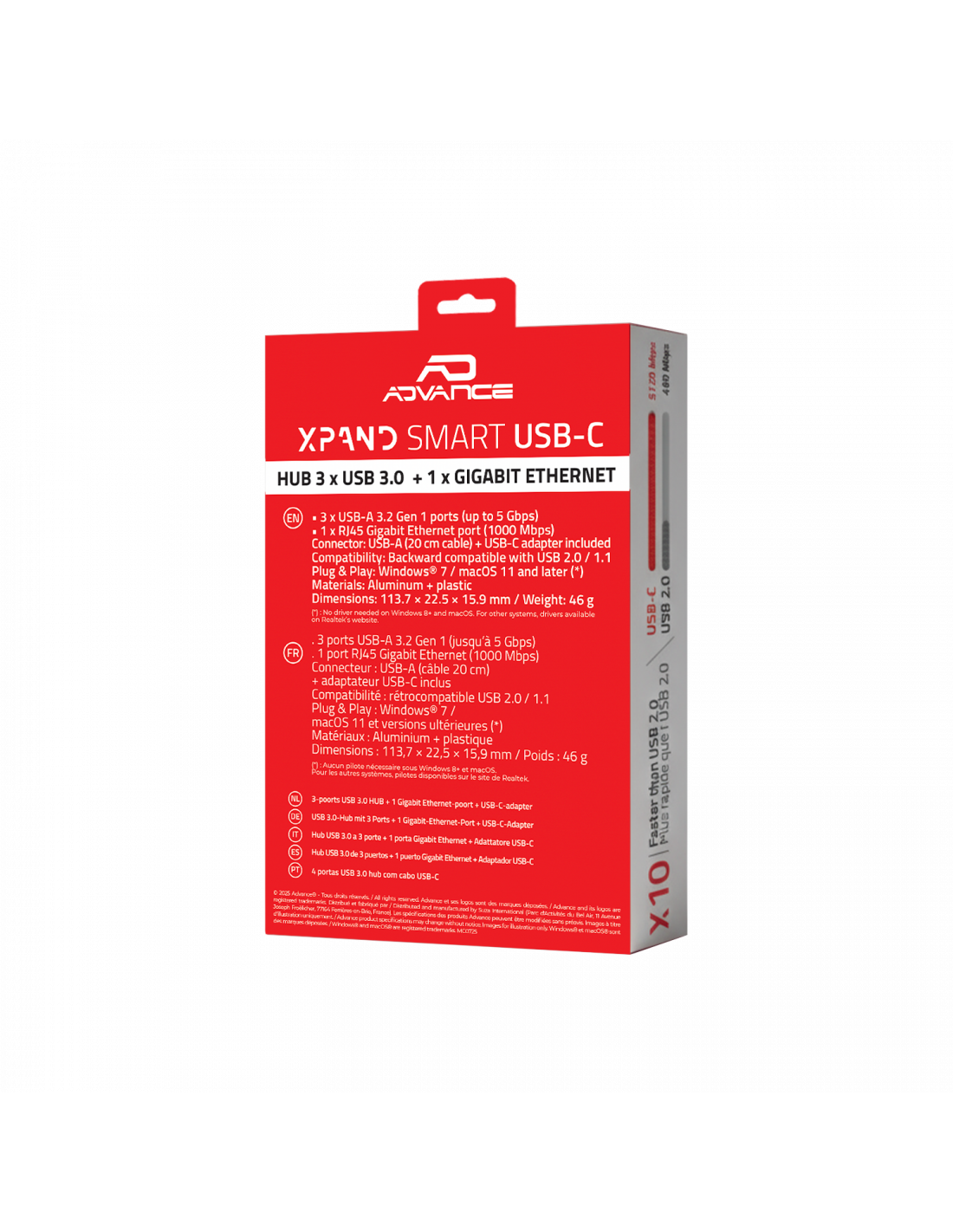 Une connectivité étendue au quotidien : Découvrez XPAND SMART, le hub 4 en 1 pensé pour vous offrir une connectivité fluide, rapide et élégante au quotidien. Conçu pour s’adapter à vos usages professionnels comme personnels, il transforme votre ordinateur en un véritable centre de connexion polyvalent. Grâce à ses trois ports 3.0 ultra-rapides, vous connectez facilement tous vos périphériques essentiels tout en conservant une excellente vitesse de transfert, pour un espace de travail plus clair et plus efficace.
