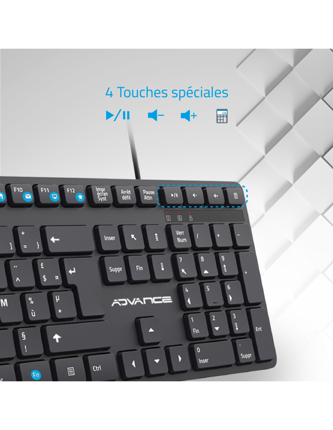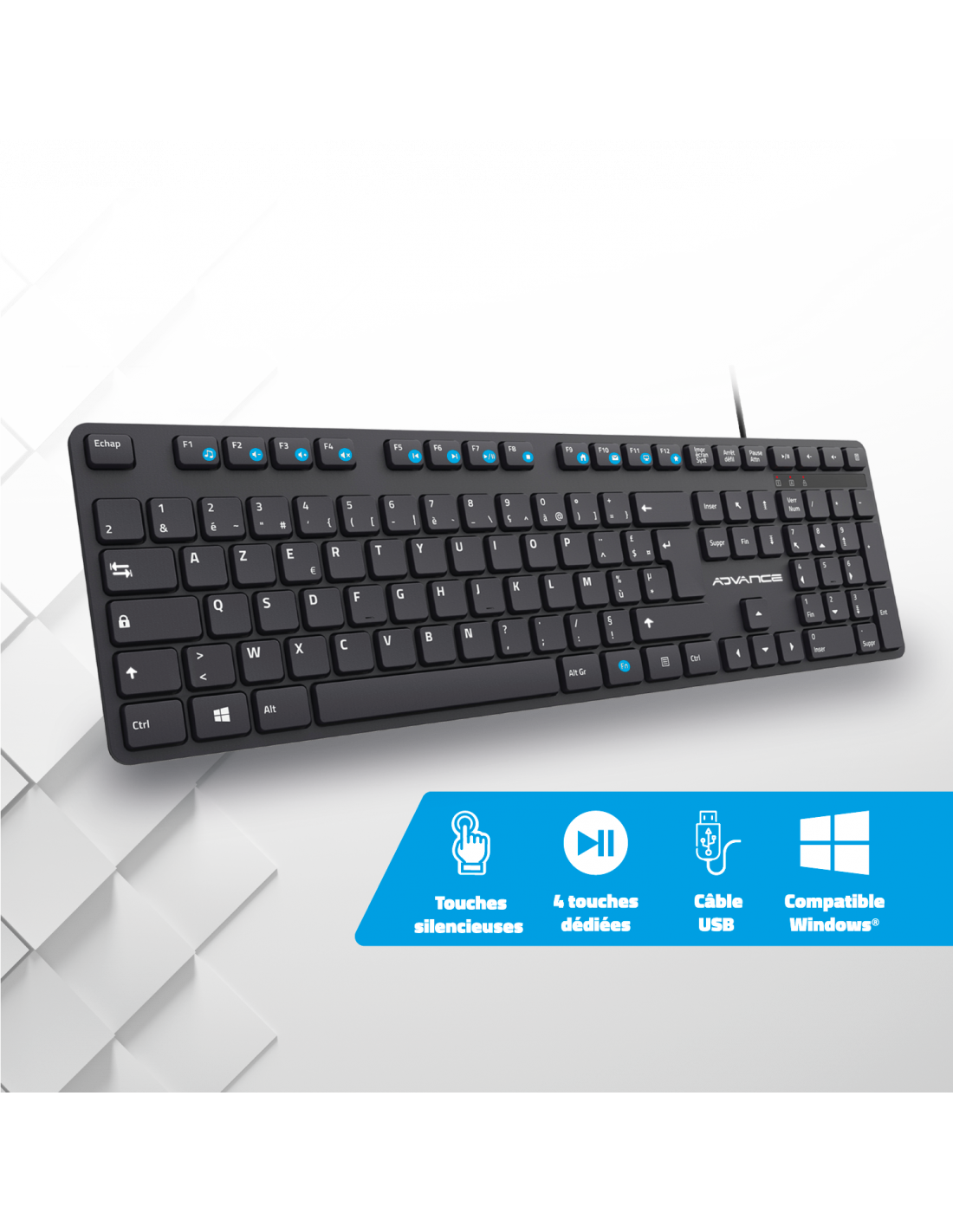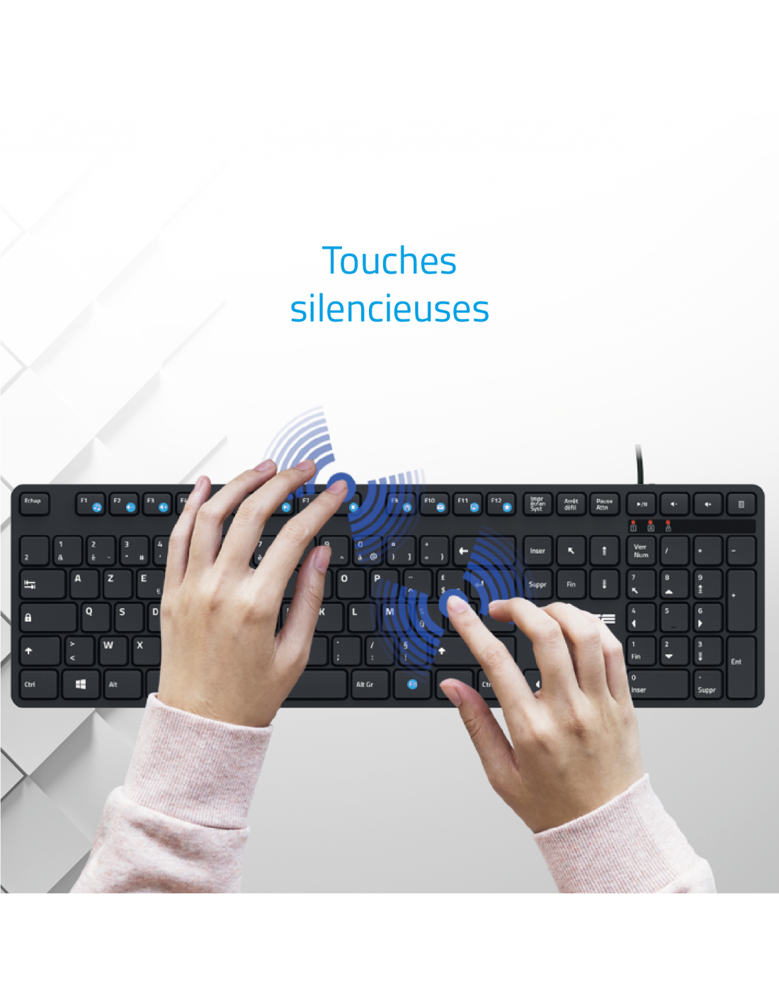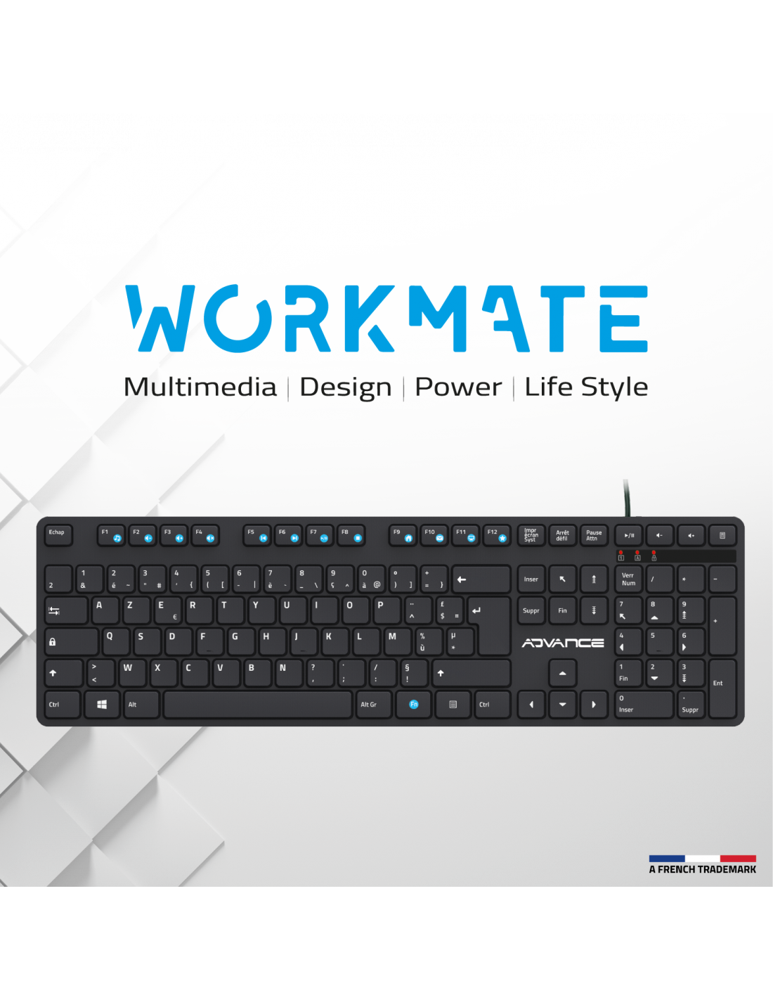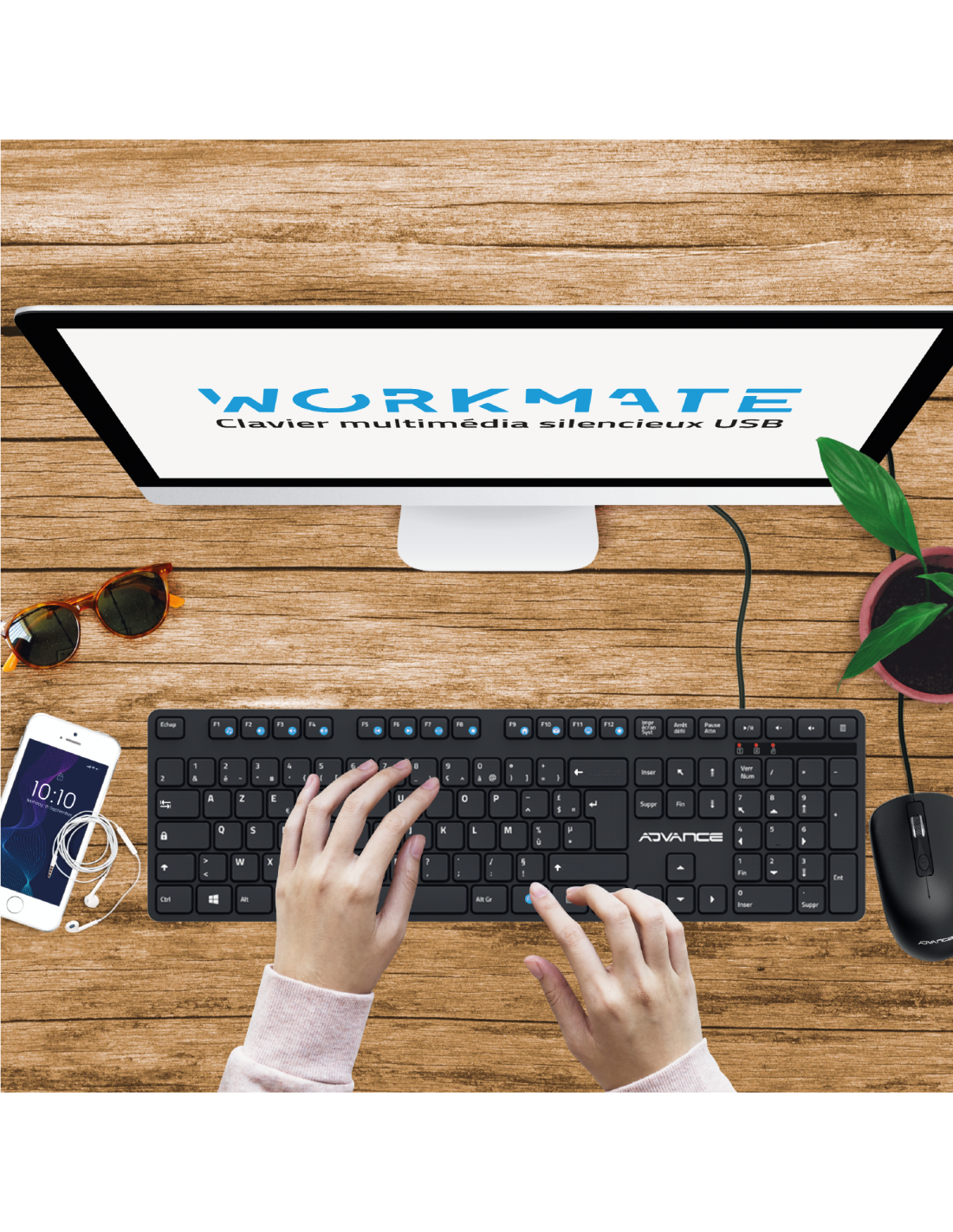 AdvanceDiscover WorkMate, the ultimate USB wired keyboard for discreet productivity! With its quiet typing, you can work without disturbing anyone, whether at the office or at home. Thanks to its silent "Chocolate" keys, the WorkMate keyboard offers a smooth and silent typing experience, ideal for those seeking absolute tranquility during their work sessions.