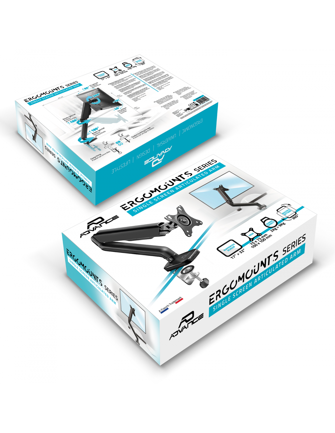 1 ECRAN : Support articulé pour un écran standard ou incurvé de 17” à 32”, Ergomount Single vous permet surtout de régler en continu la position de votre écran et de profiter d’une position plus ergonomique pour travailler.