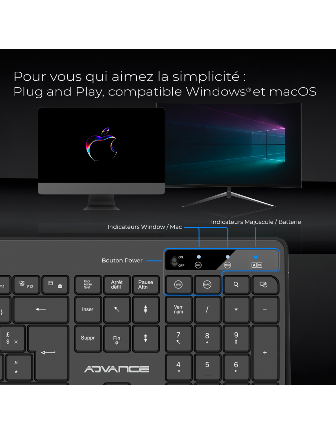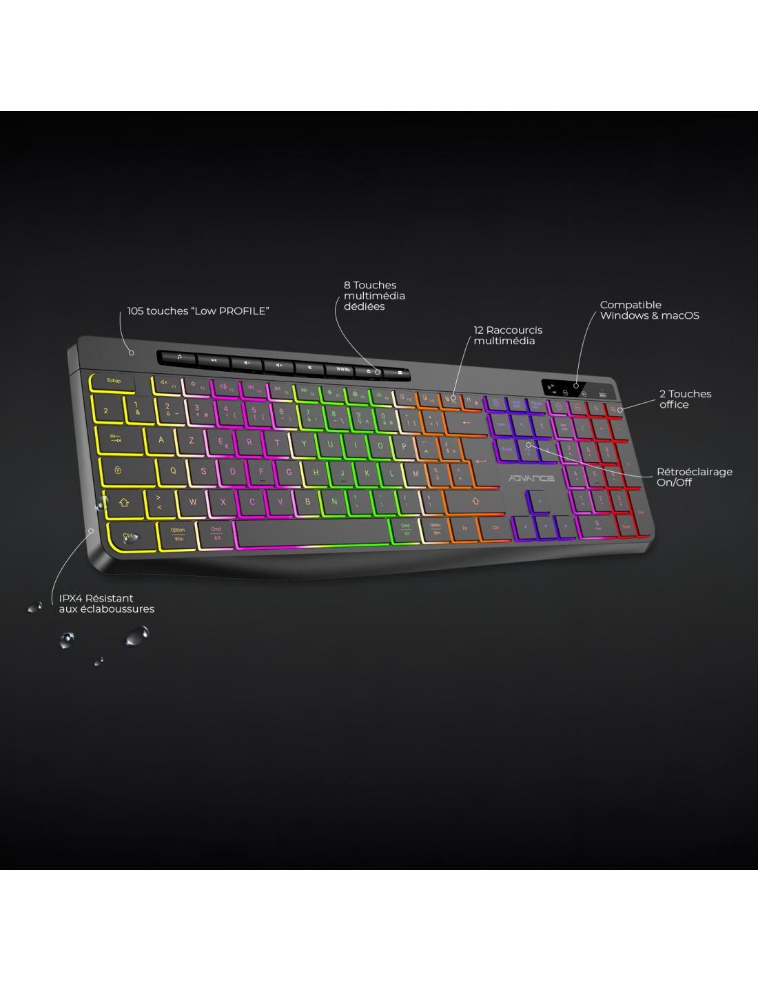 Tastiera wireless 118 tasti "Low profile" (Layout AZERTY)